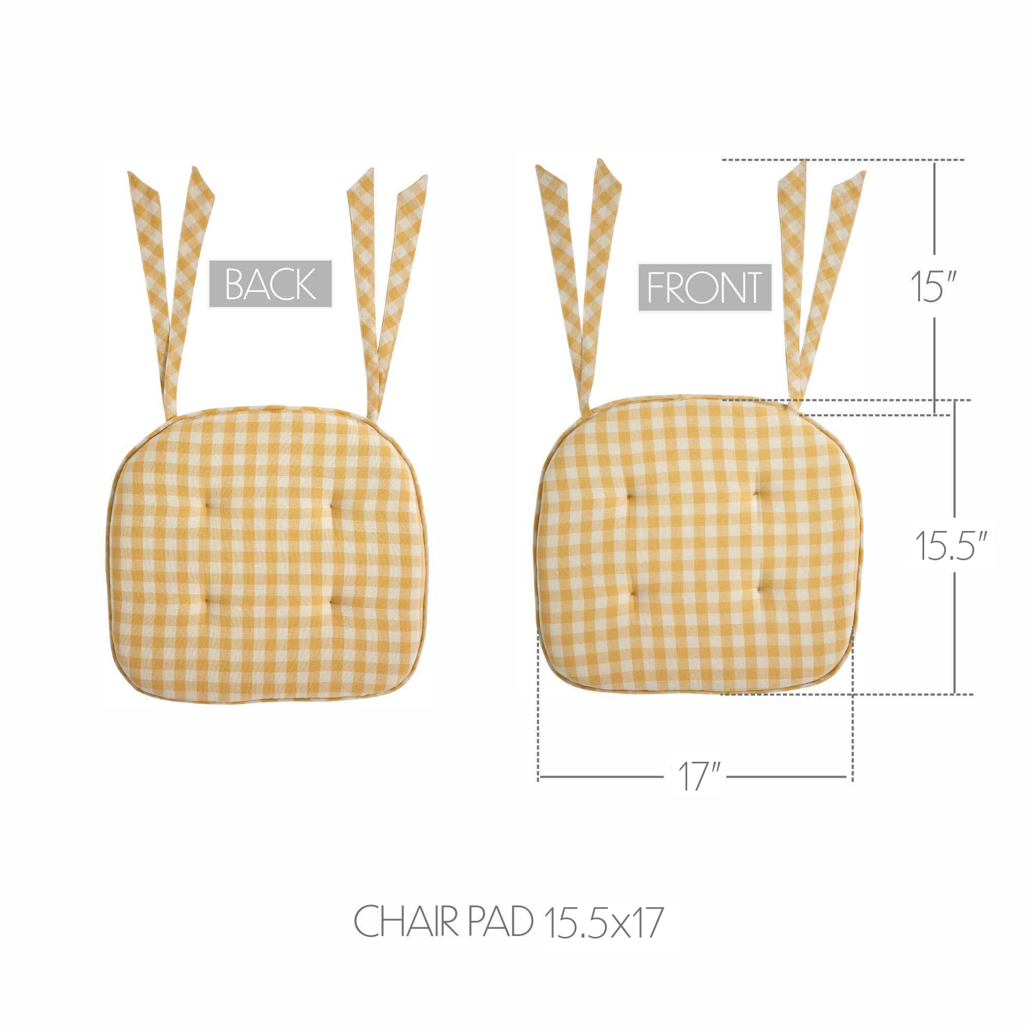 Golden Honey Yellow Check Farmhouse Vintage Chair Pad 15.5x17 - VHC Brands